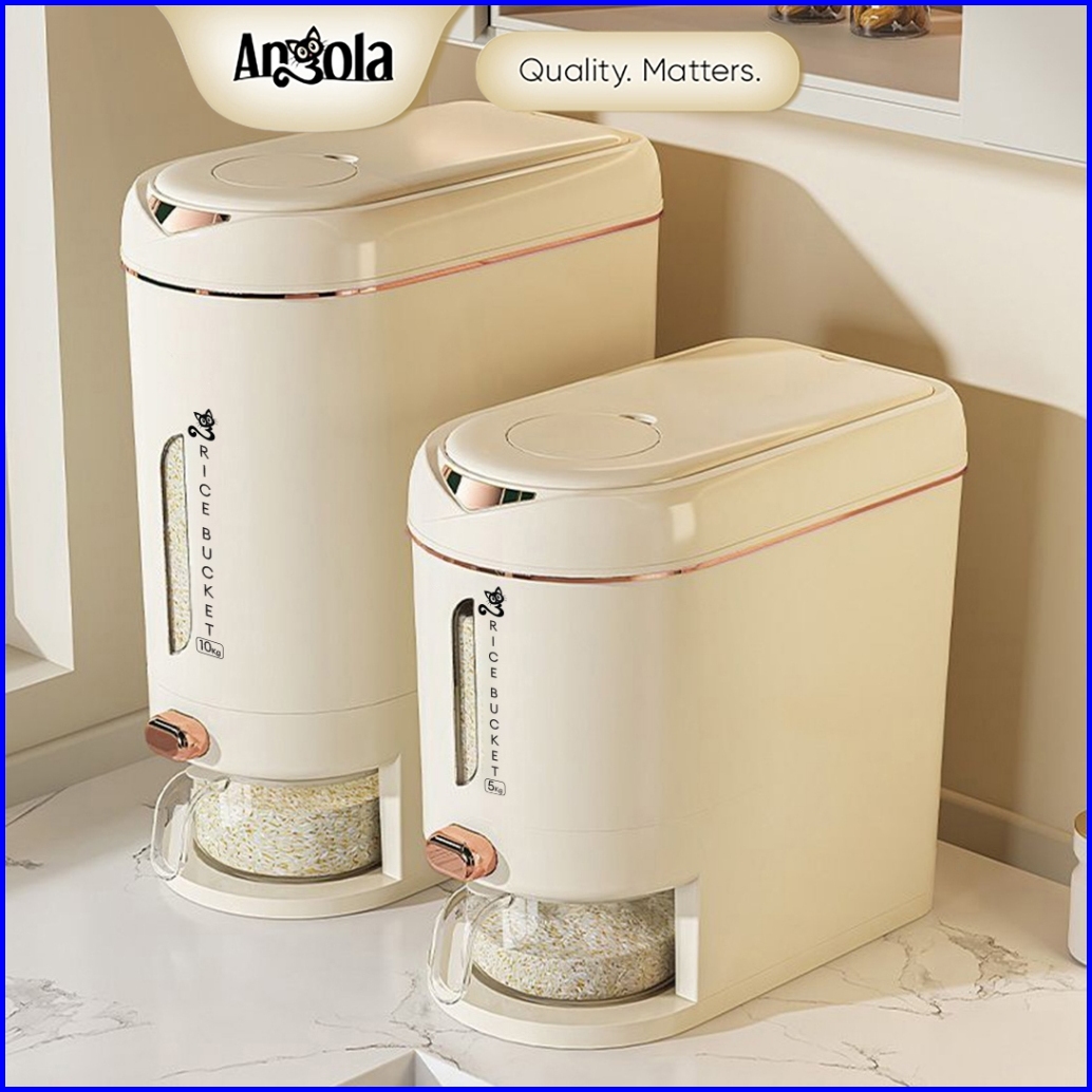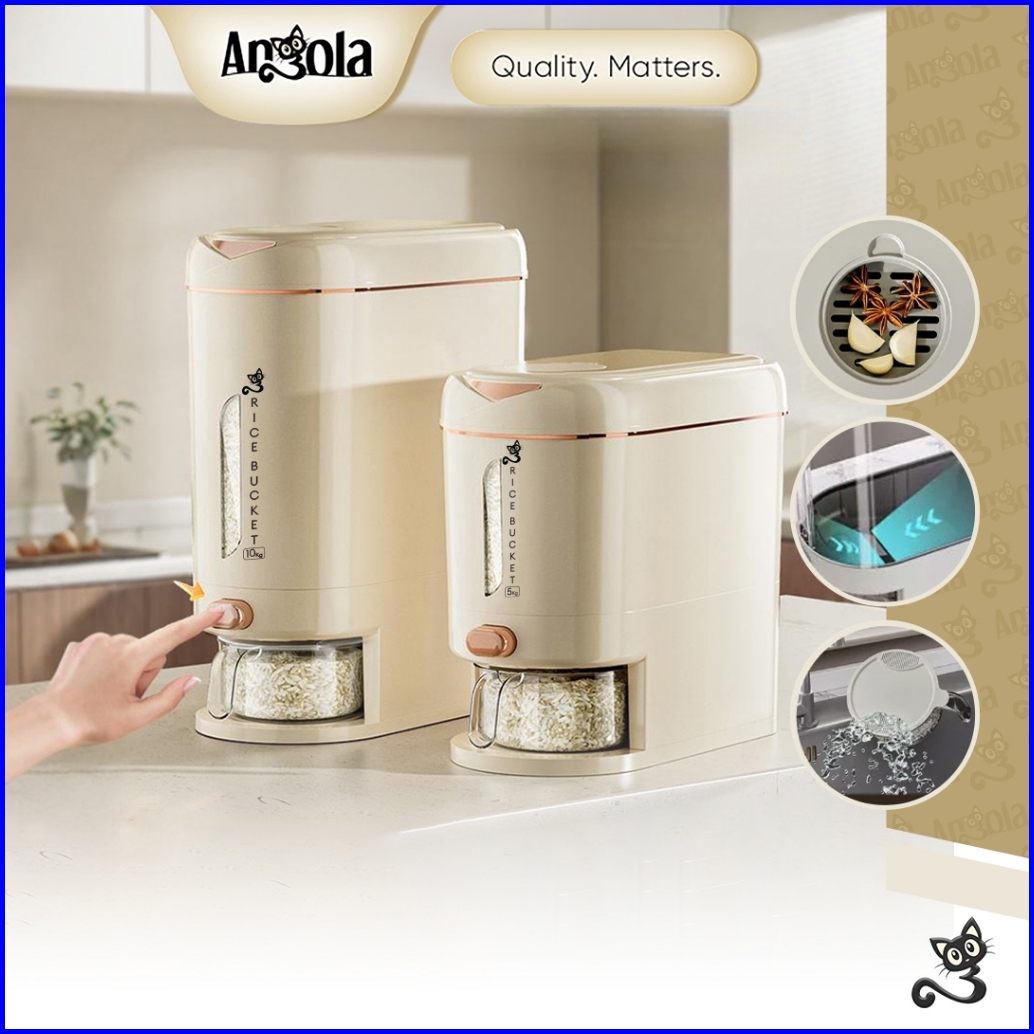 Angola Dispenser Beras Otomatis 5-10kg E29-e31 Tempat Penyimpanan Beras Food Grade Anti Kutu