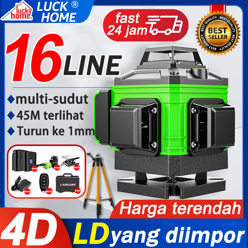 L4ser Level 16 Lines Mesin Self Leveling Bangunan L4ser Sinar Hijau dengan Remote L4ser Siku