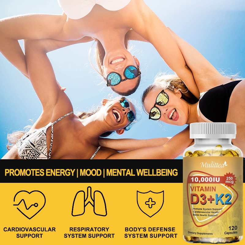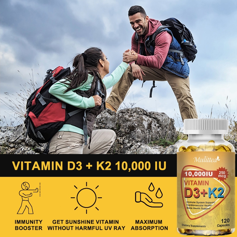 Mulittea Vitamin D3 10000iu with 250mcg vitamin K2(mk7) Capsules For Bone & joint Health Boosting Calcium Absorption Hea