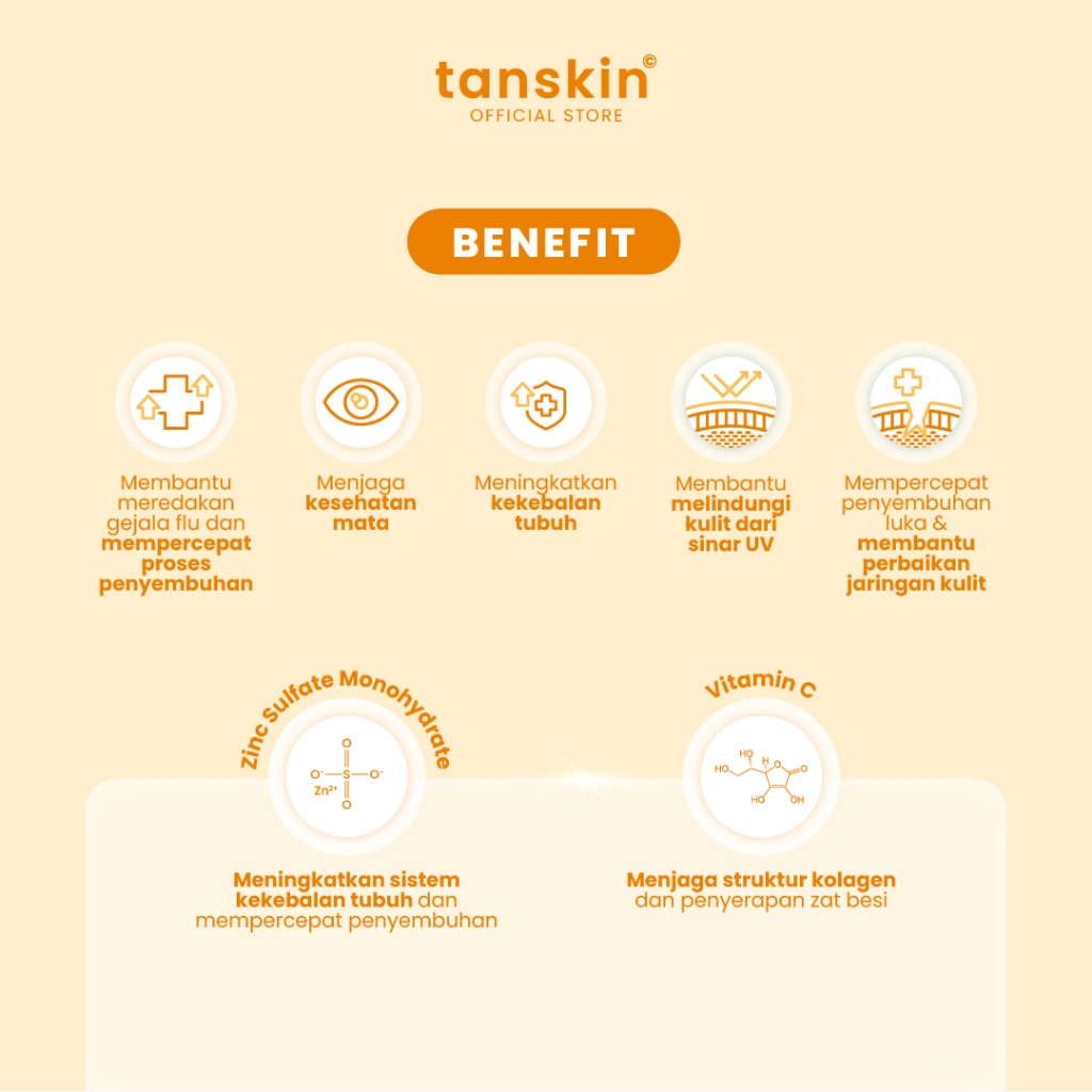 Tanskin Vitamin Zinc 25mg plus Vit C Suplemen Kulit Kesehatan Tubuh dan Kecantikan