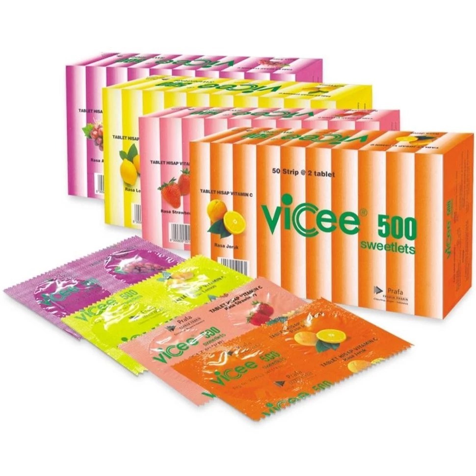 (PAKET 1 Box Isi 50 Strip) Vicee 500 Sweetlets Tablet Hisap Vitamin C - Multivitamin Suplemen Kesehatan Multivitamin Sup