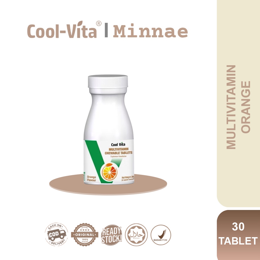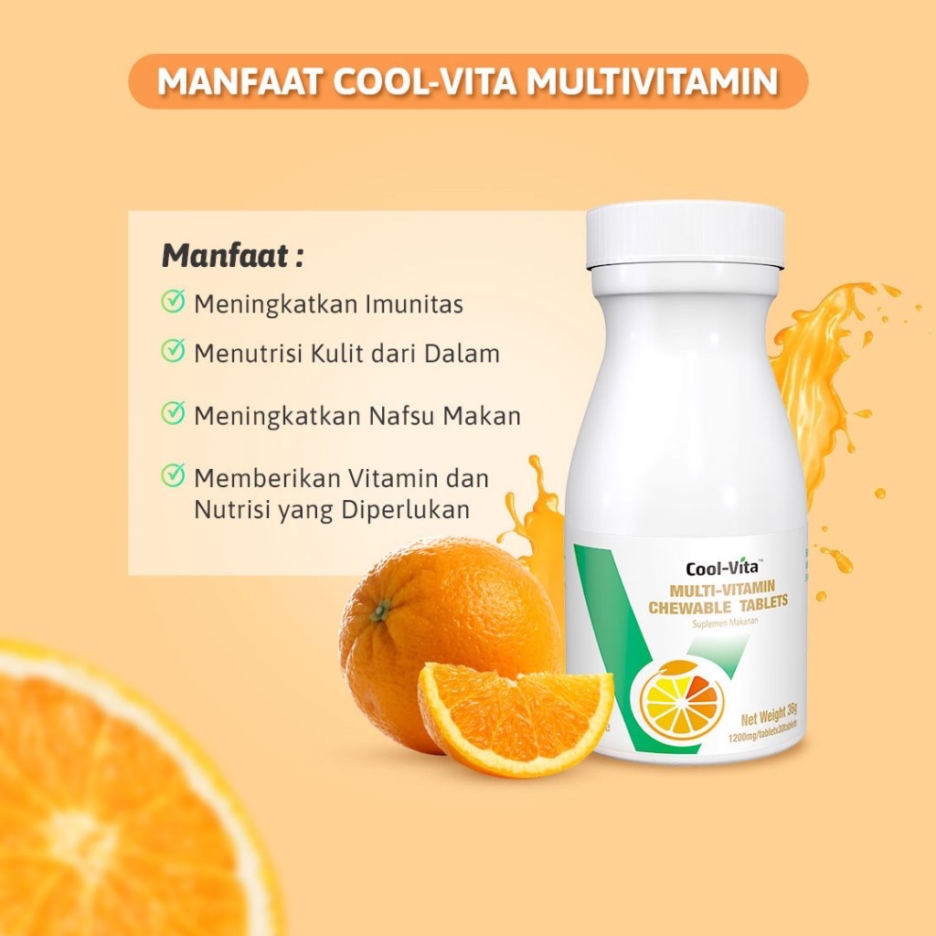 Coolvita Multivitamin Chewable Orange 1 Botol 30 Tablet - Suplemen Kunyah Rasa Jeruk untuk Bantu Tambah Nafsu Makan dan