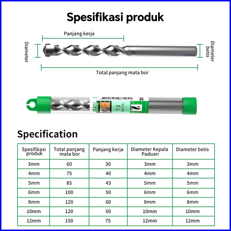 Isku Mata Bor Beton 3mm-12mm Tembok Dinding Mollar Masonry Impact Drill Bit