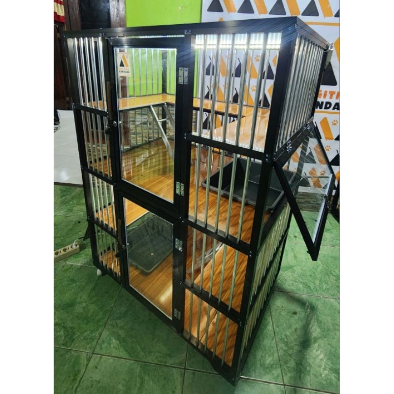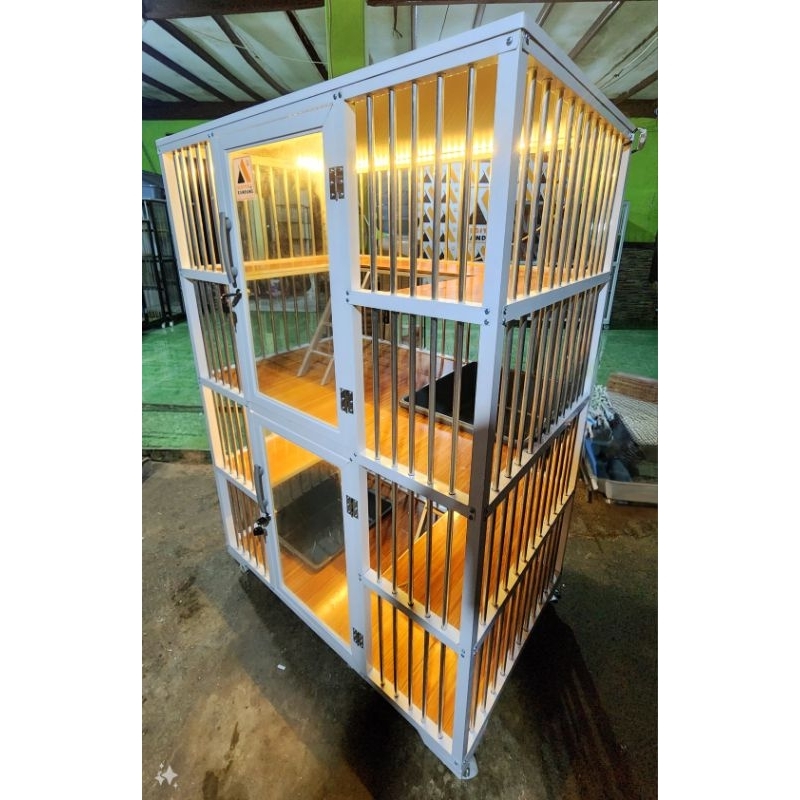 Kandang Kucing Aluminium 2 Pintu 2 Lantai Letter U
