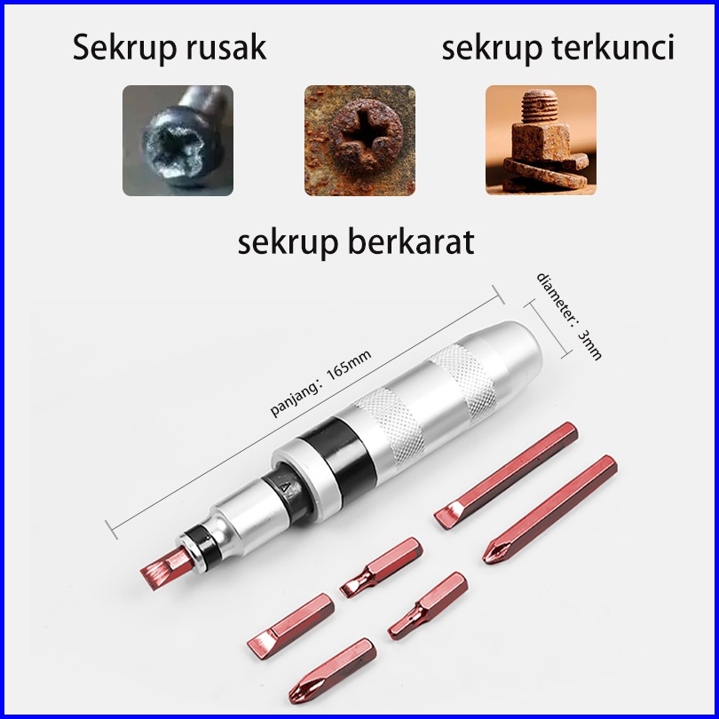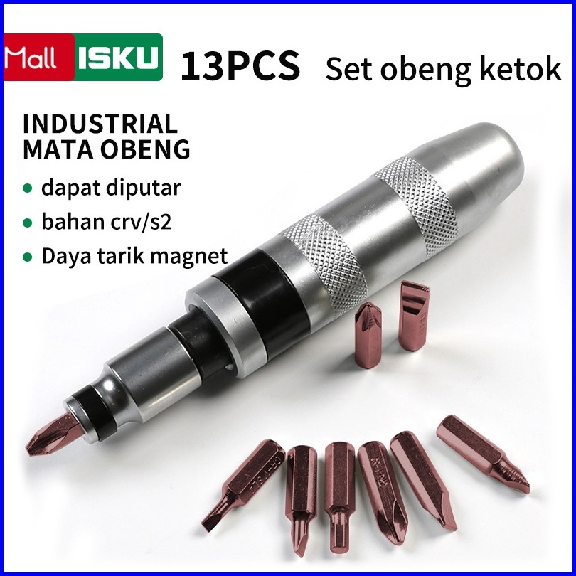 Isku Obeng Ketok Set 13pcs Obeng Set Putar Set S2 Drill Bit Bahan Non-karat Impact Screwdriver Set Box Besi Obeng Ketok