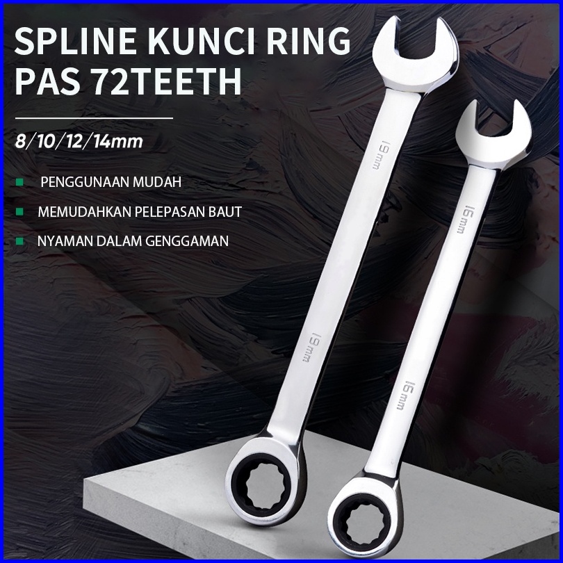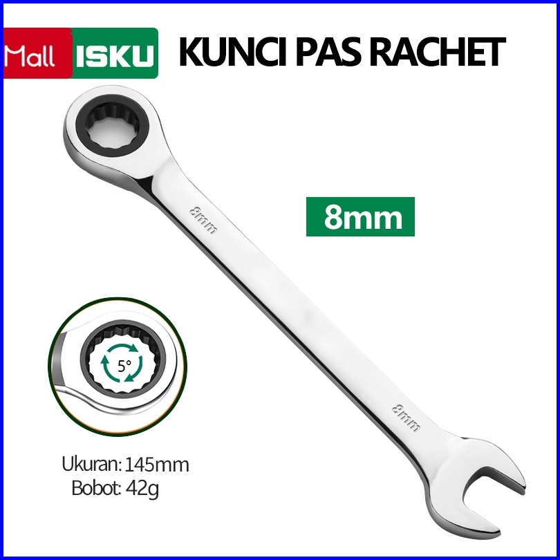 Isku Kunci Rachet 8mm 72gigi Kunci 8 Kunci Rachet Multifungsi Bahan Crv Kuat Anti Karat Kunci Ring Pas Bolak Balik