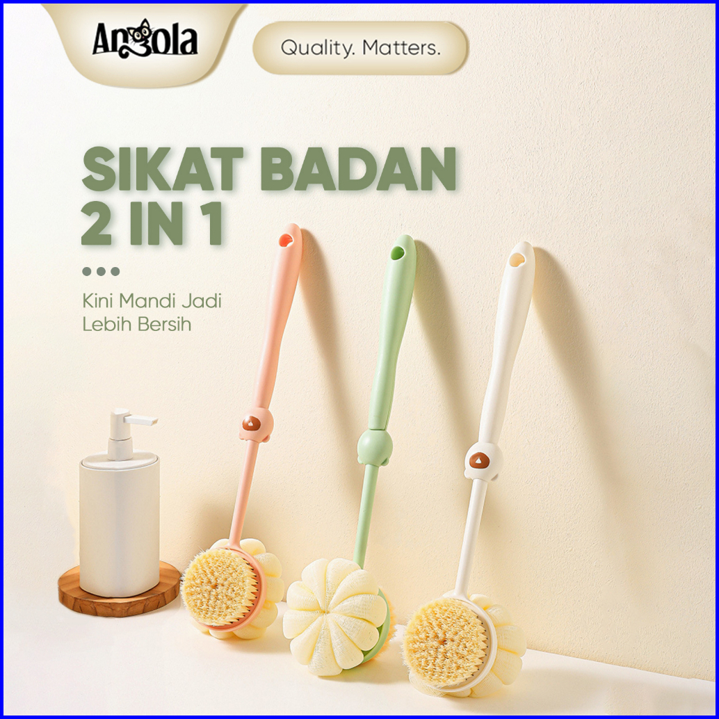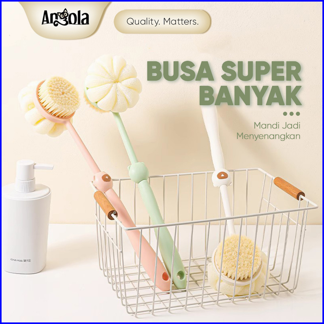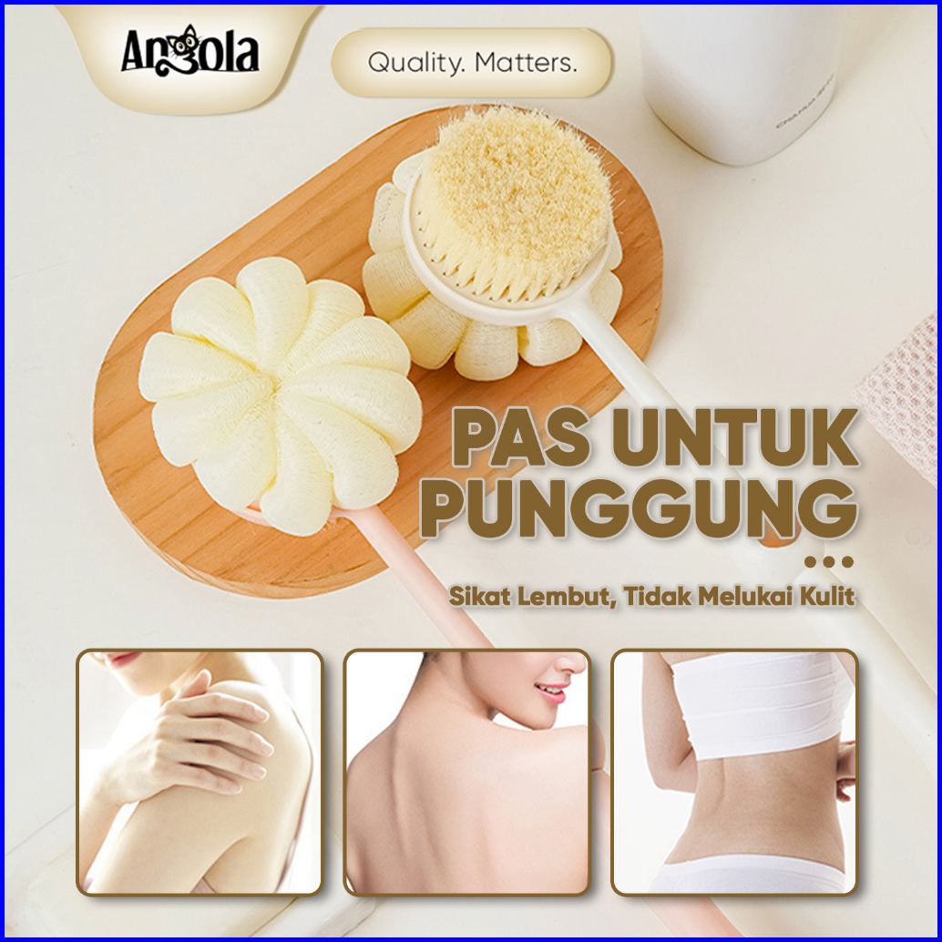 Angola Sikat Punggung Badan Dan Sponge Puff Loofah 2in1 D92 Alat Bantu Gosok Punggung Badan 2 Sisi Sikat Punggung Serbag