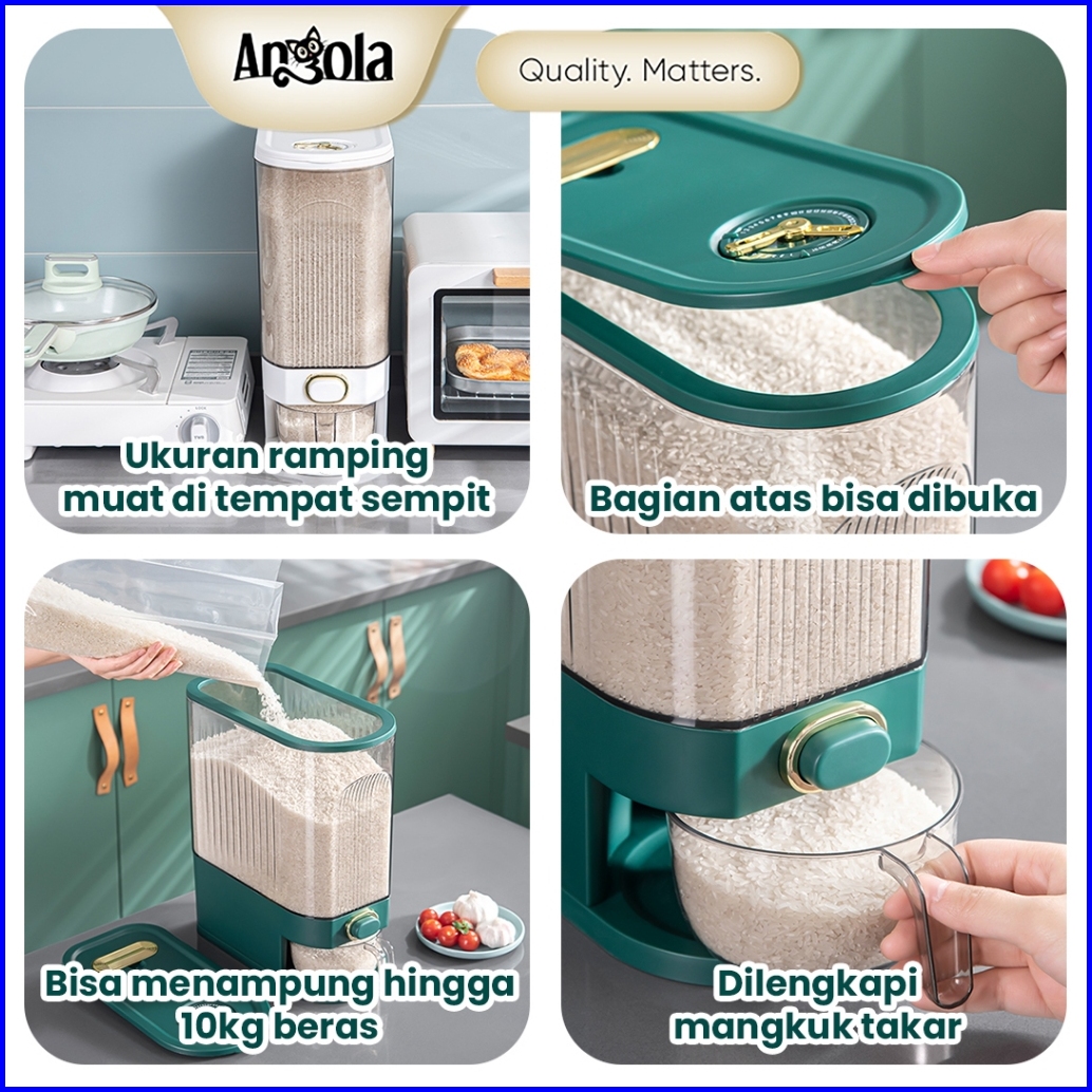Angola Dispenser Beras Otomatis E25-e26 Tempat Penyimpanan Beras Anti Kutu Gratis Mangkok Cuci Beras