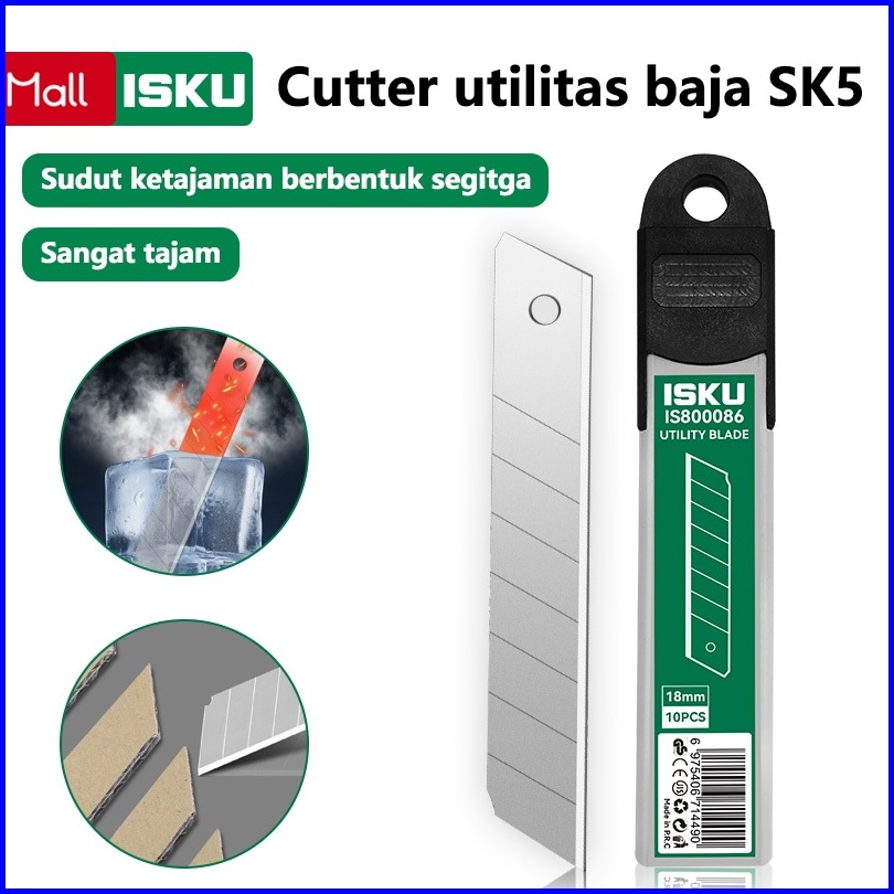 Isku Pisau Cutter Profesional Sk5 - 18mm Blade Anti Karat Isi Ulang 10pcs - Perkakas Tajam Besar