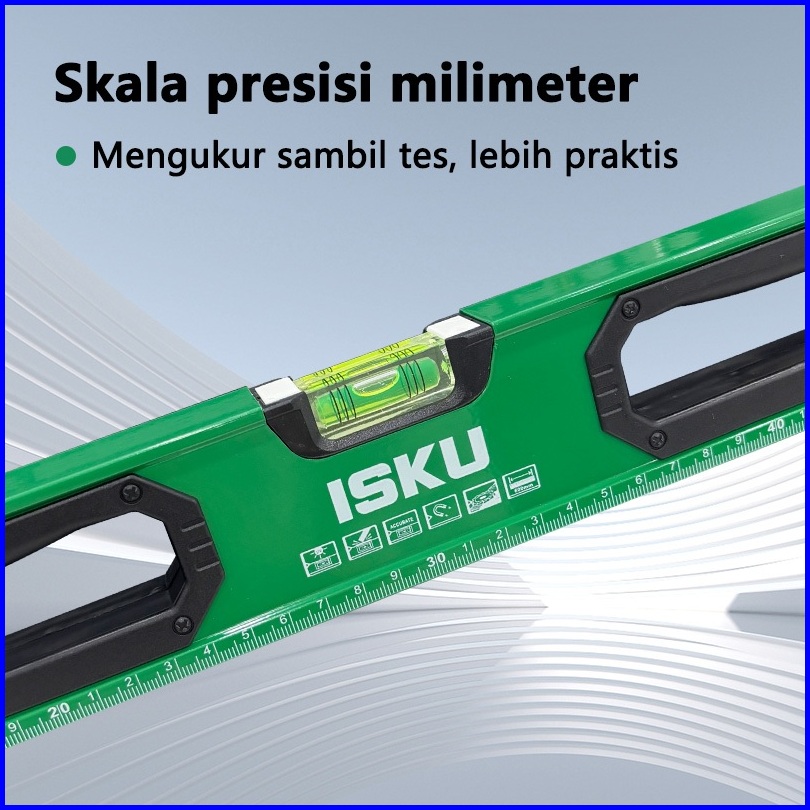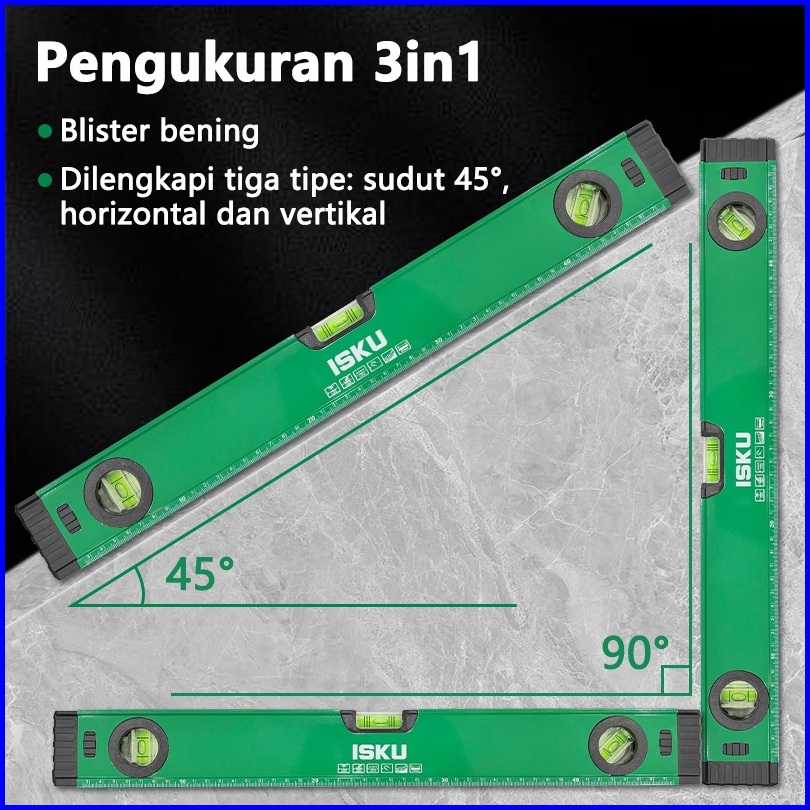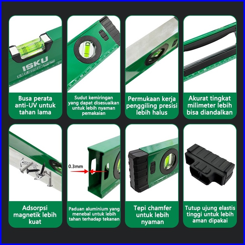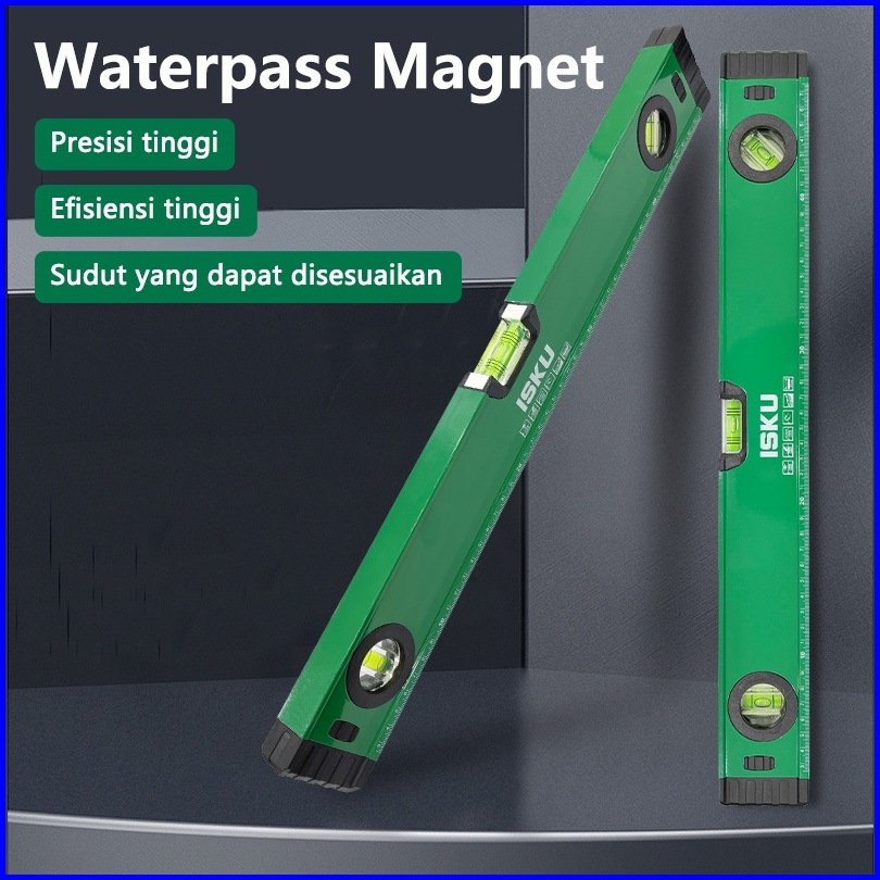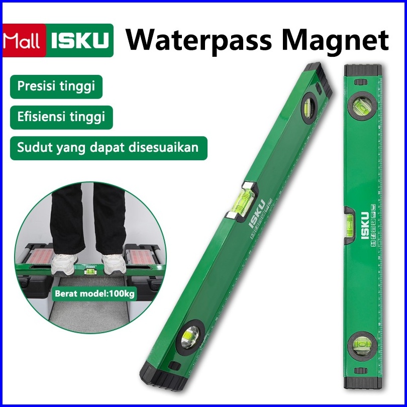Isku Spirit Level Waterpass Magnet Bahan Paduan Aluminium Ukuran 30 40 50 60 80 100cm - 300mm