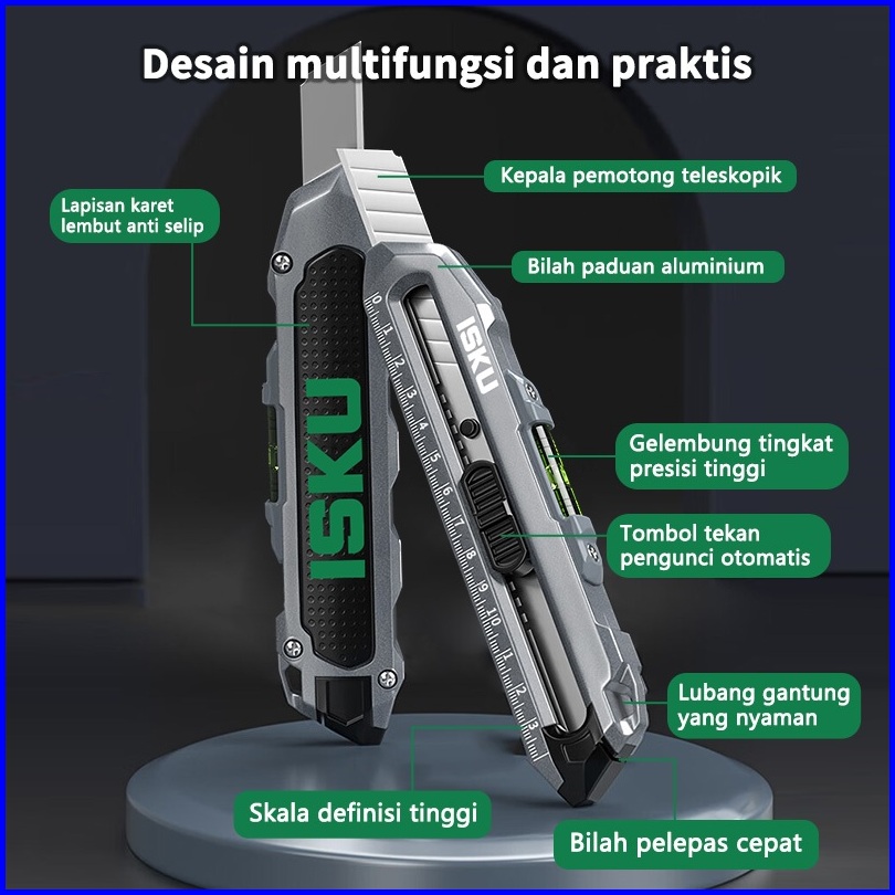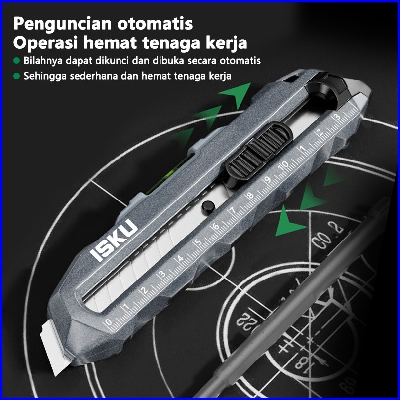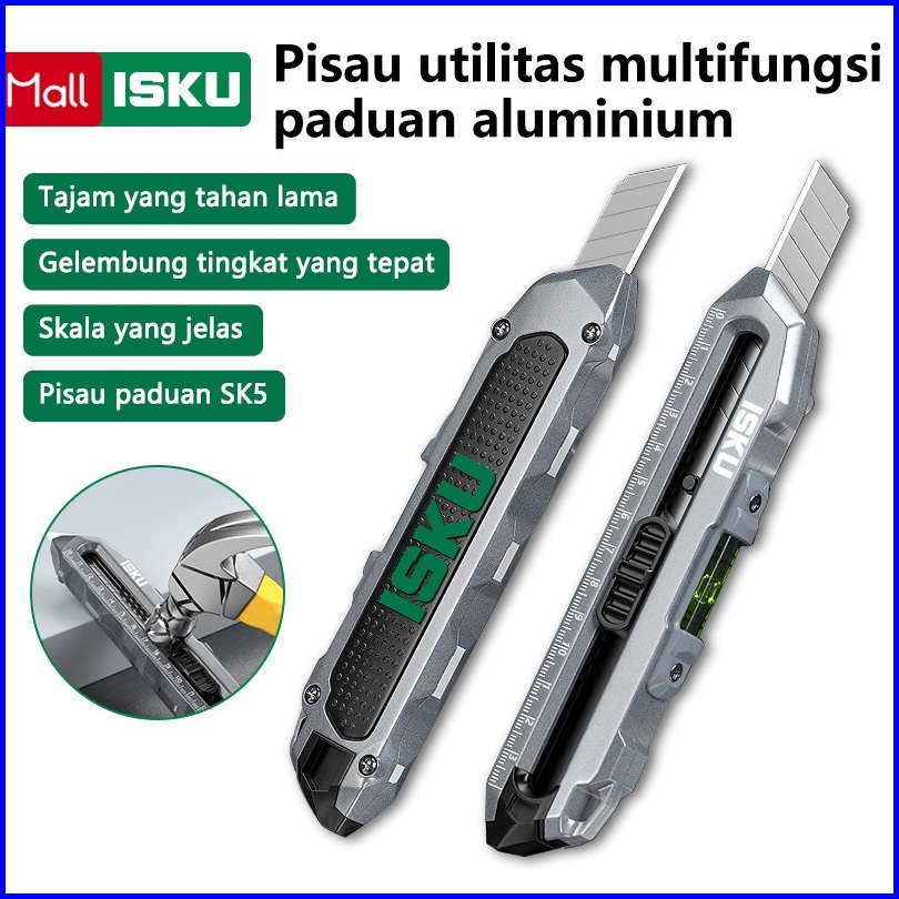 Isku Pisau Cutter Multifungsi Paduan Aluminium Knife Cutter Knife Auto Lock Cutter Sk5 Bahan