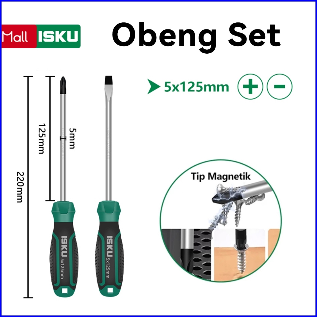Isku Obeng Set Magnet Plus Dan Minus 5 125mm Screwdriver Set Kuat Bahan Chrome Vanadium