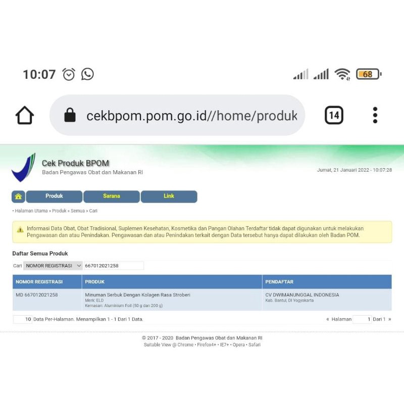 ELD Collagen Drink 60 Gram ( BAYAR DI TEMPAT )
