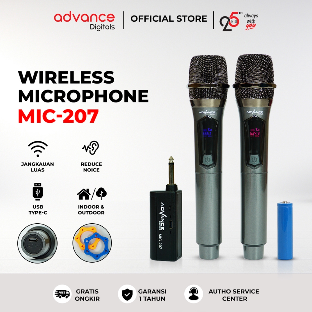 Advance Mic-207 Dual Microphone Wireless Anti Noise Garansi Resmi 1 Tahun