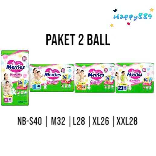 Paket 2 Ball Merries Good Skin Pants Popok Celana NB-S40, M32, L28, XL26, XXL28