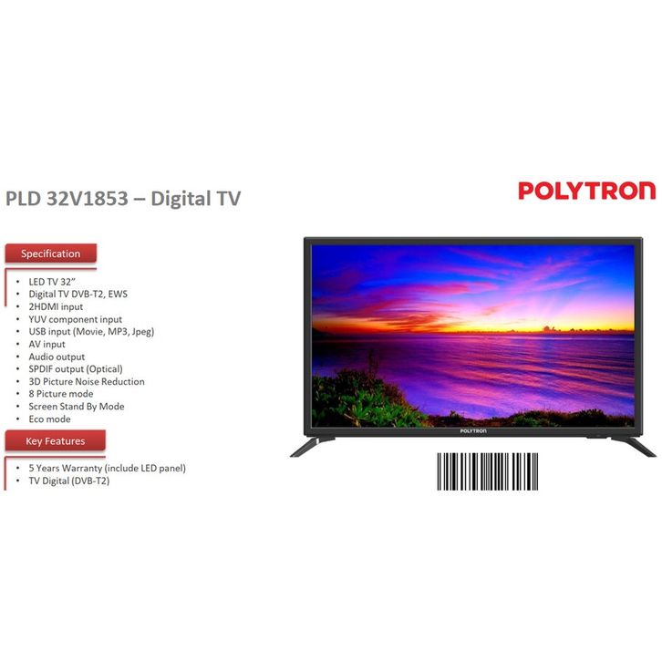 PROMO LED TV POLYTRON PLD32V1853 PLD 32V1853 DVB T2 DIGITAL TV LED 32 IN + USB MOVIE - BERGARANSI ORIGINAL
