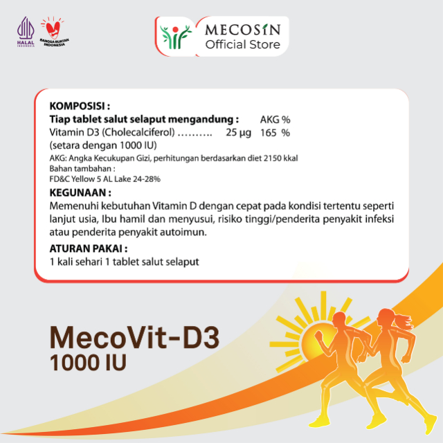 MecoVit-D3 1000IU / Vitamin D3 1000 IU 1 Box 30 Kaplet - Multivitamin