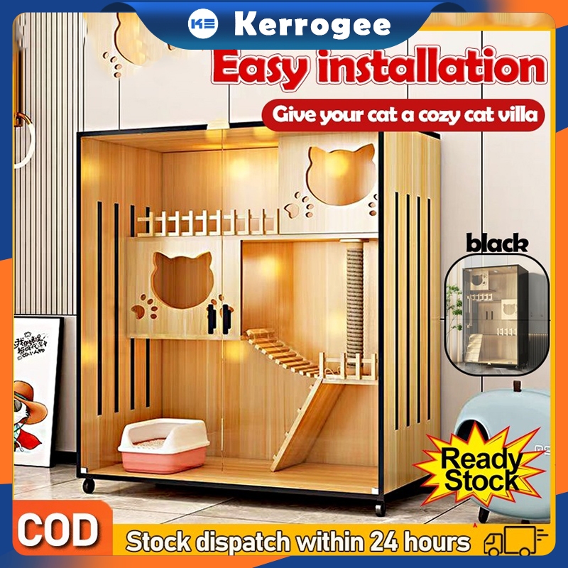 ⚡Cakupan Kerusakan&Free led⚡Rumah Kucing kandang Anti Scratch wood Cat House Cat Rumah Villa Kandang Kucing Elegant Kandang Hewan Peliharaan Kucing kerrg