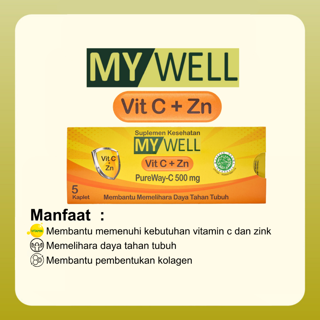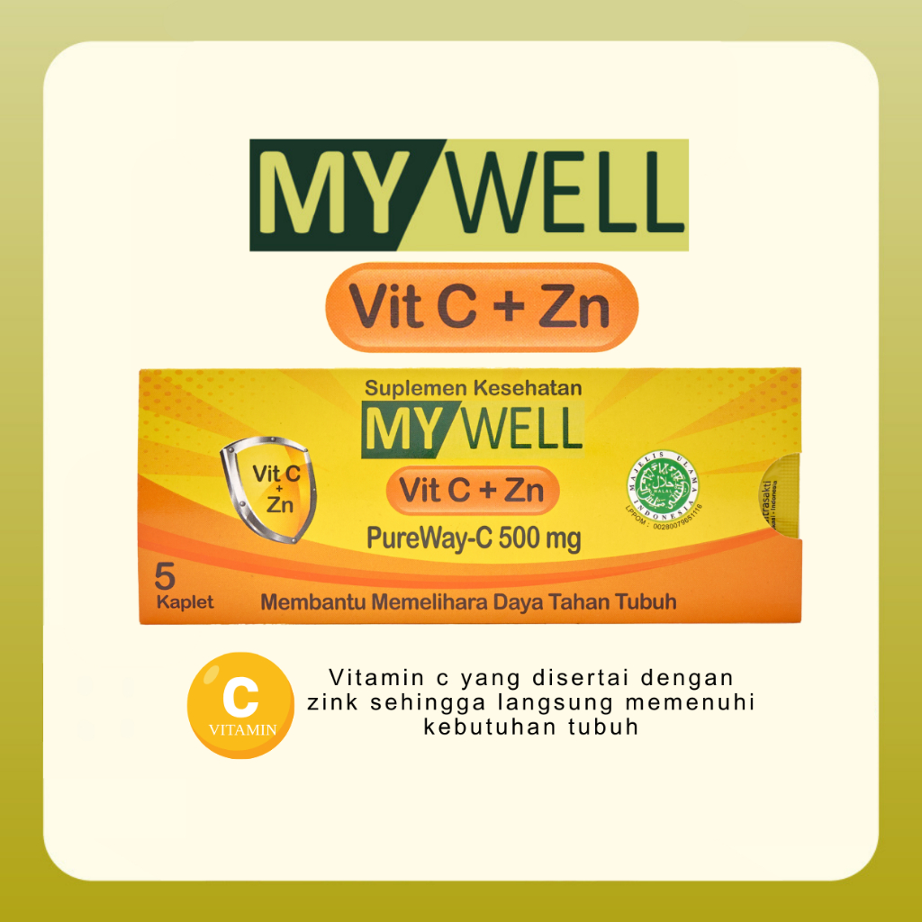 Paket Mywell Vitamin C+Zn 3 Amplop @5 Kaplet - Suplemen Kesehatan