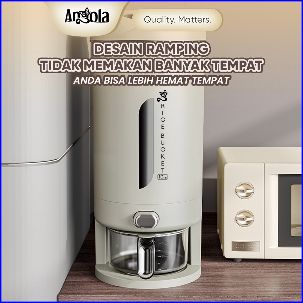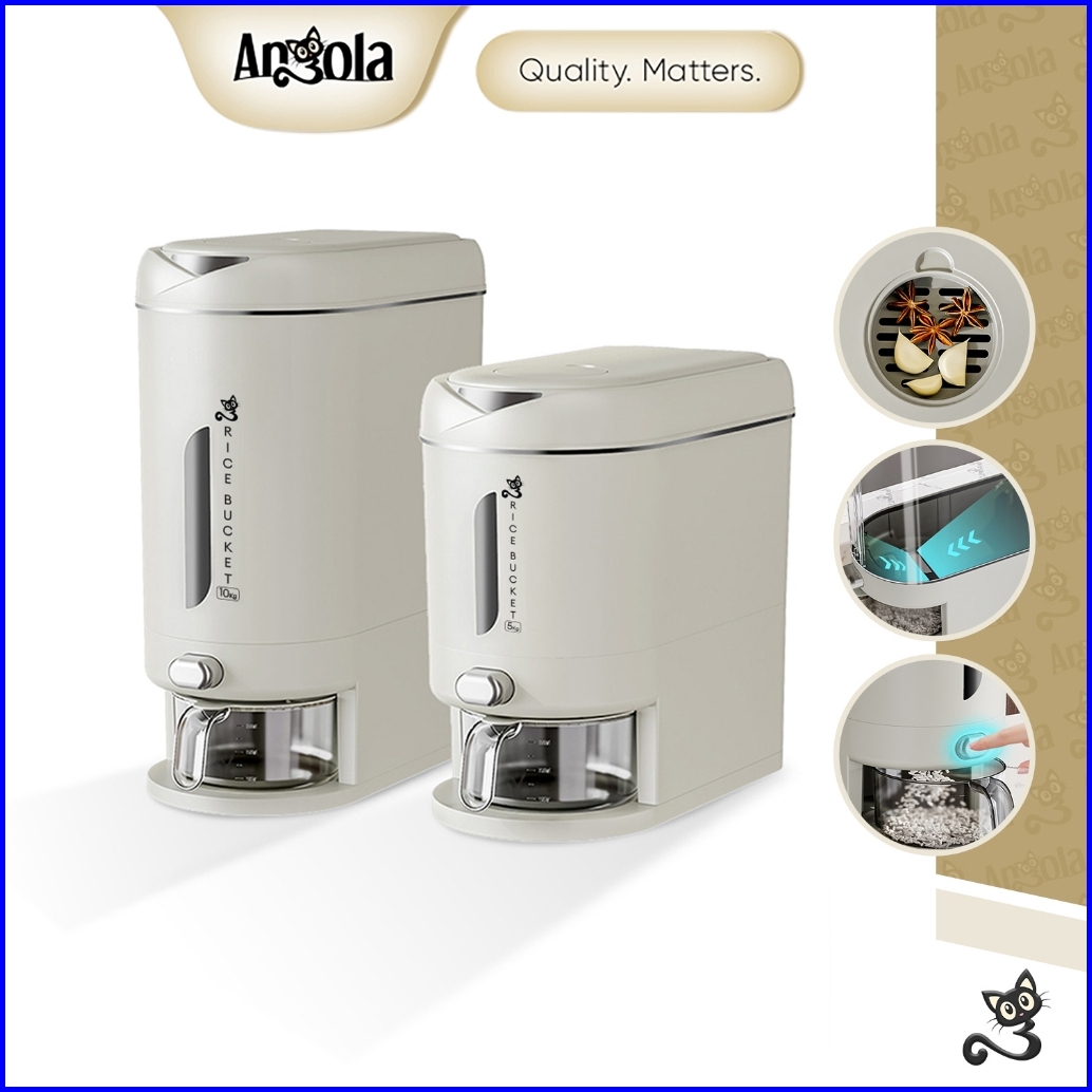 Angola Tempat Beras Otomatis 10kg E29-e31 Dispenser Beras Food Grade Anti Kutu Pencet Otomatis