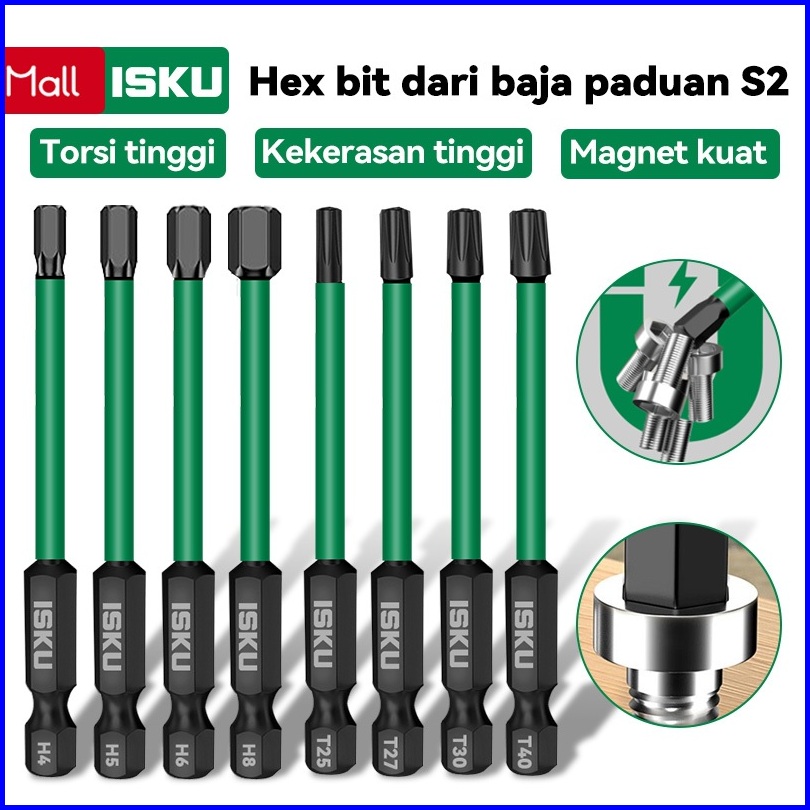 Isku Magnetic Kunci L Hex Key Baja S2 Set 8 Pcs Star Bit Set 9 Pcs Mata Obeng