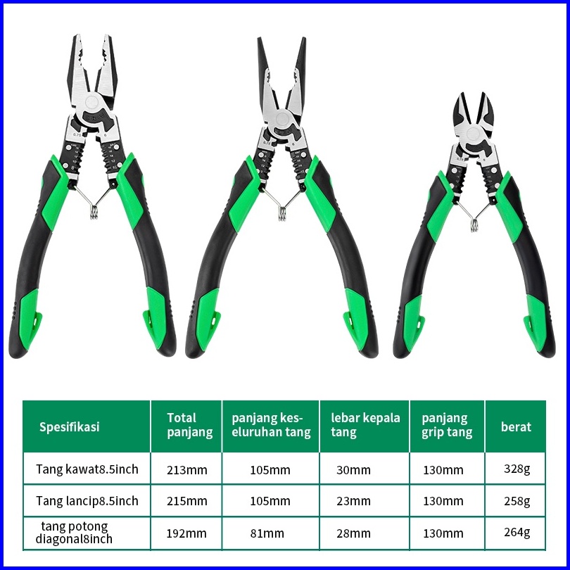 Isku Tang Kombinasi 8.5 Inch Tang Potong 8 Inch Dan Tang Lancip 8.5 Inch Isku Heavy Duty Pliers Tang Multifungsi