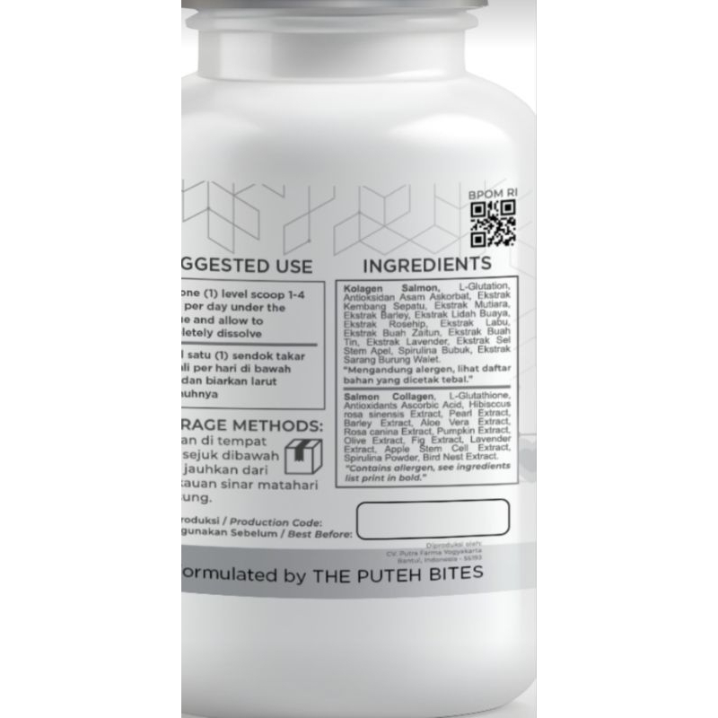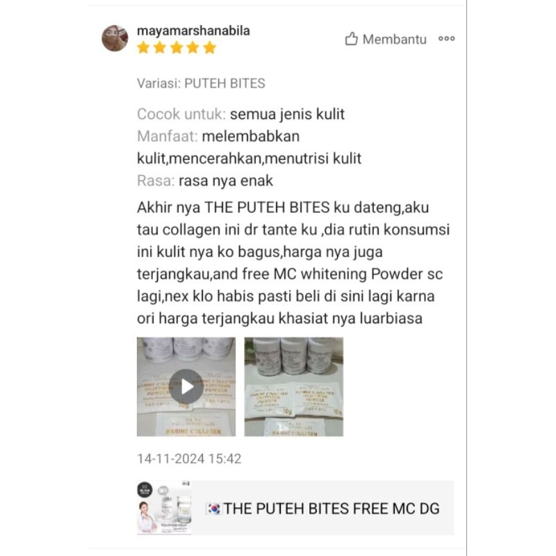 SUPPLEMENT COLLAGEN & GLUTATHIONE BPOM THE PUTEH BITES (50X PENGGUNAAN)