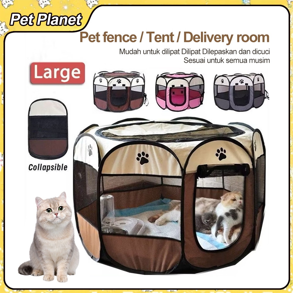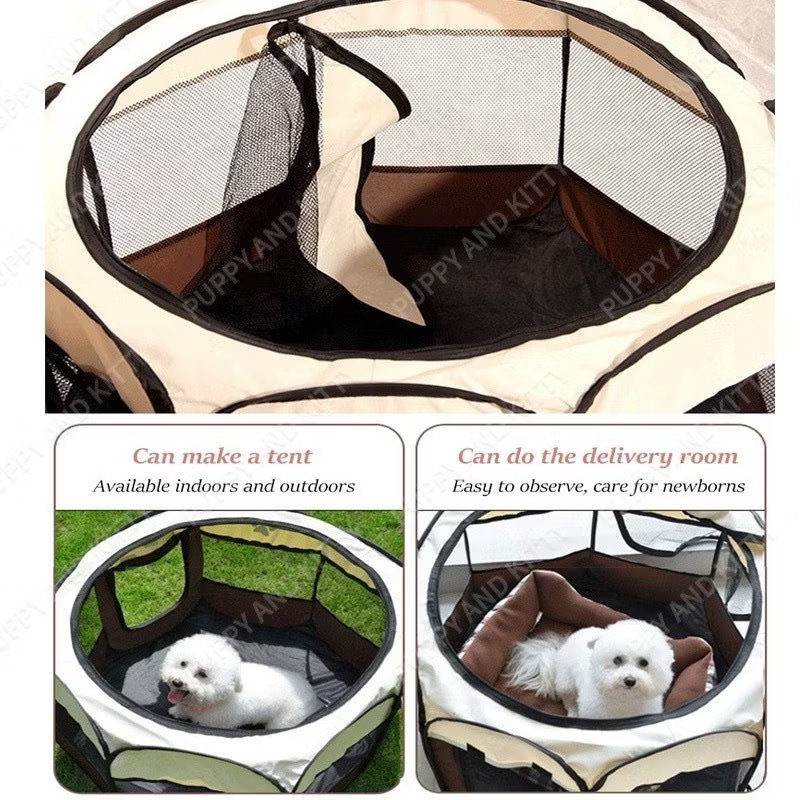 Kandang Kucing Pagar Tenda Lipat Portabel Dengan 8 Panel Untuk Kucing Anjing Lipat Hewan Bahan Kain
