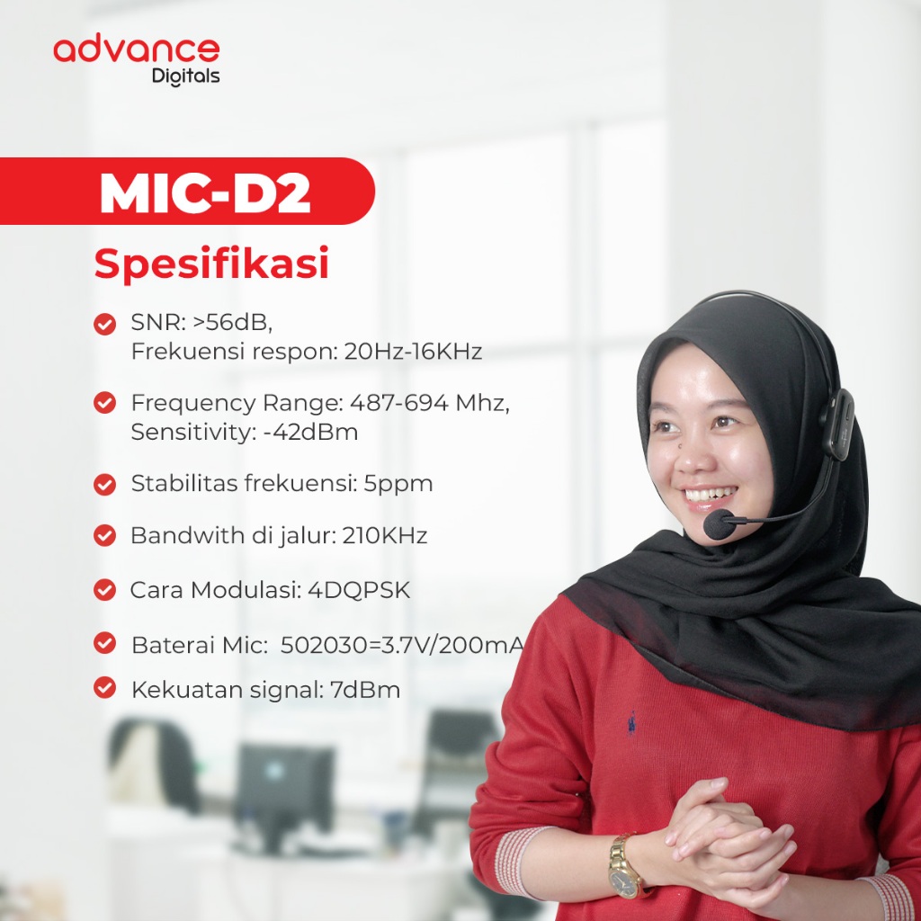 Advance MIC-D2 Wireless Microphone Headset D-2 Microphone Bando Garansi Resmi 1 Tahun
