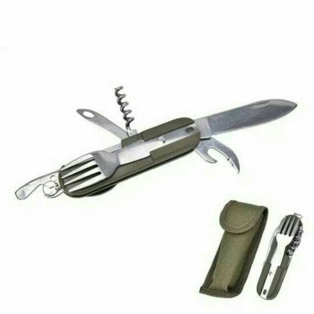 MURAH Sendok garpu set - sendok army - sendok lipat - sendok travel - pisau lipat esafd