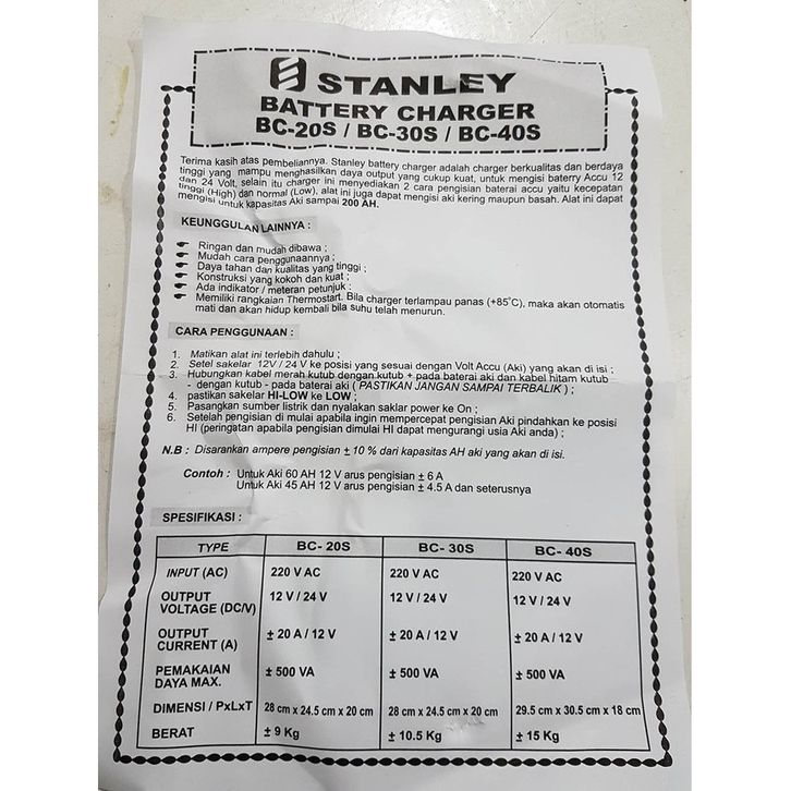 Charger Aki 40A / Accu Merk Stanley 40A ( 12v & 24v ) cas aki mobil