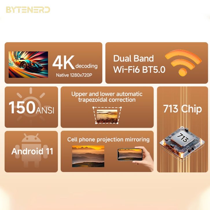 NEW Arrival ByteNerd CY300MAX Proyektor Android 11.0 Bluetooth Projector 2.4+5G Wifi 6 Portabel Mini Proyektor