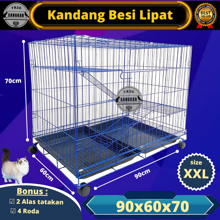 KANDANG KUCING JUMBO SIZE XXL 2 TINGKAT BESI LIPAT TEBAL