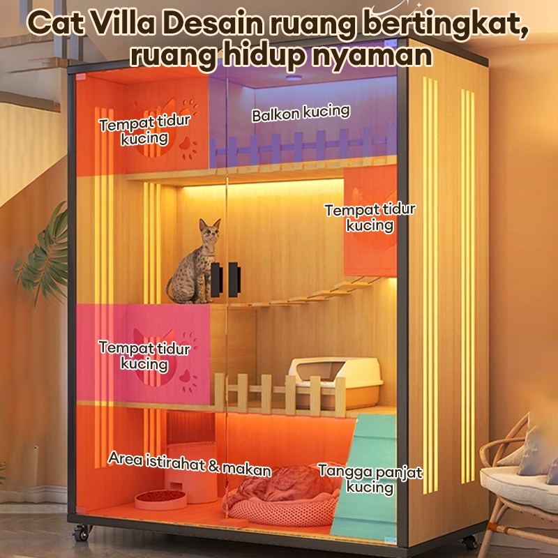 【Peng3M4San Tebal】Kandang rumah kucing tahan gores rumah kucing kayu rumah kucing vila kandang p4P1