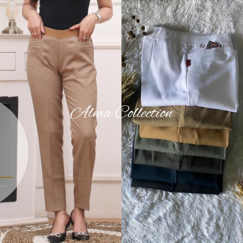 CELANA KERJA WANITA/ KANTOR/ FORMAL JUMBO/CELANA BAHAN KUALITAS PREMIUM/ SLIMFIT PINGGANG KARET