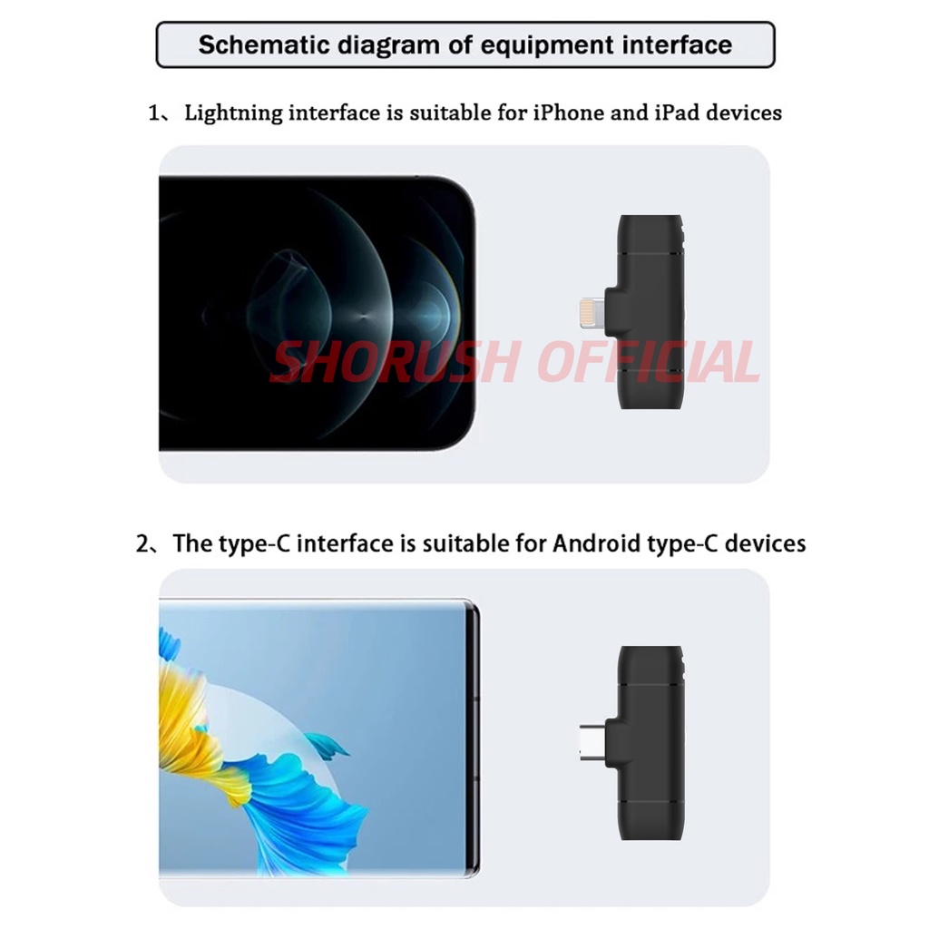 Shorush MI-1 Microphone Mic Clip On Wireless 2.4Ghz HP VLOG Youtuber Portable USB Type C Android Lightning Plus Iphone X XR XS 11 Pro Max SE 2 Dual