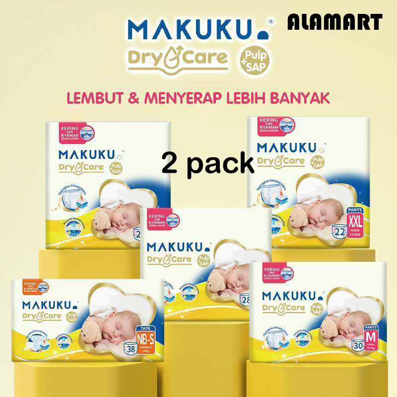 (2 PACK) MAKUKU DRY CARE NBS38/S38/M30/L28/XL24/XXL22 +6 +4 m30+6 l28+6 xl24+4