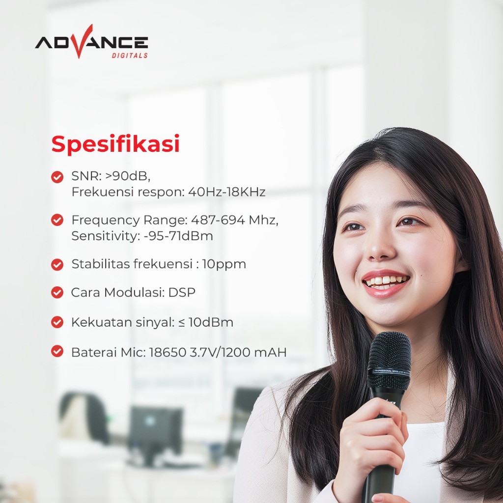 Advance MIC-404 Professional Dual Microphone Wireless Jack 6,5mm Microphone Duet Garansi 1 Tahun