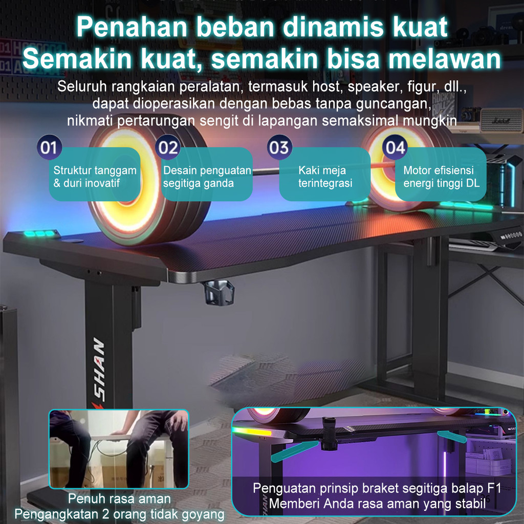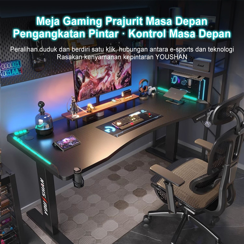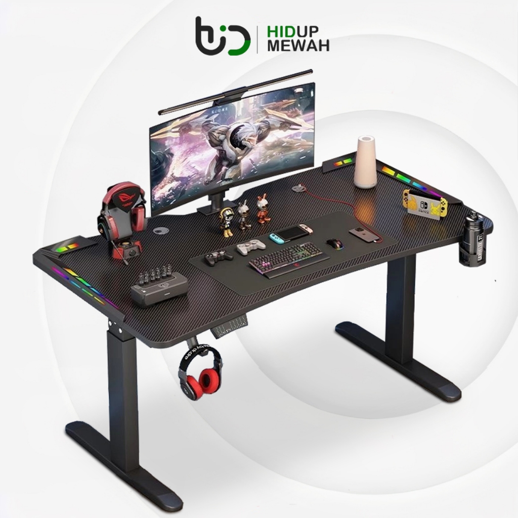 Meja Electric Adjustable Work Gaming Desk Meja Komputer Serat Karbon/ Meja Komputer Serat Karbon 140CM