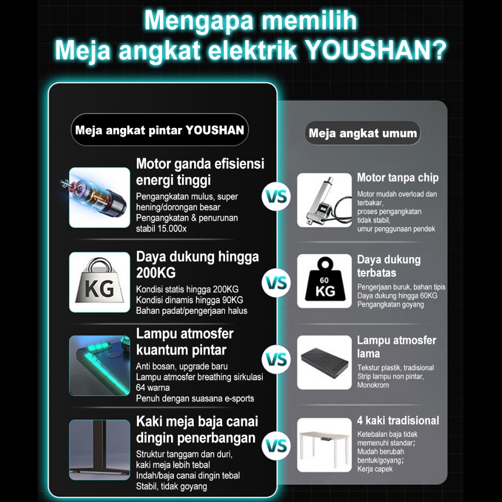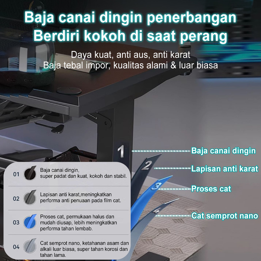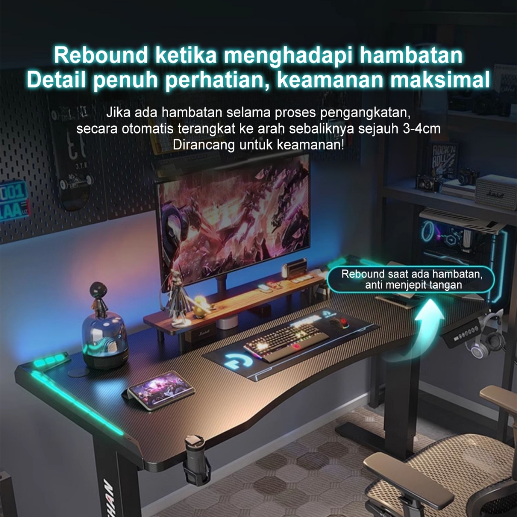 Meja Electric Adjustable Work Gaming Desk Meja Komputer Serat Karbon/ Meja Komputer Serat Karbon 140CM