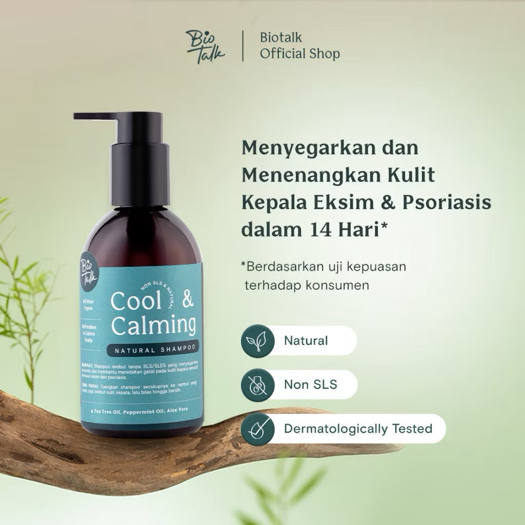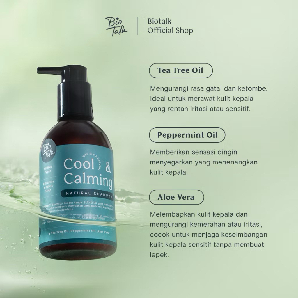 Biotalk Cool & Calming Shampoo 250ml menyejukkan dan menenangkan Non SLS/SLES Sls sles perawatan rambut shampo shampoo B