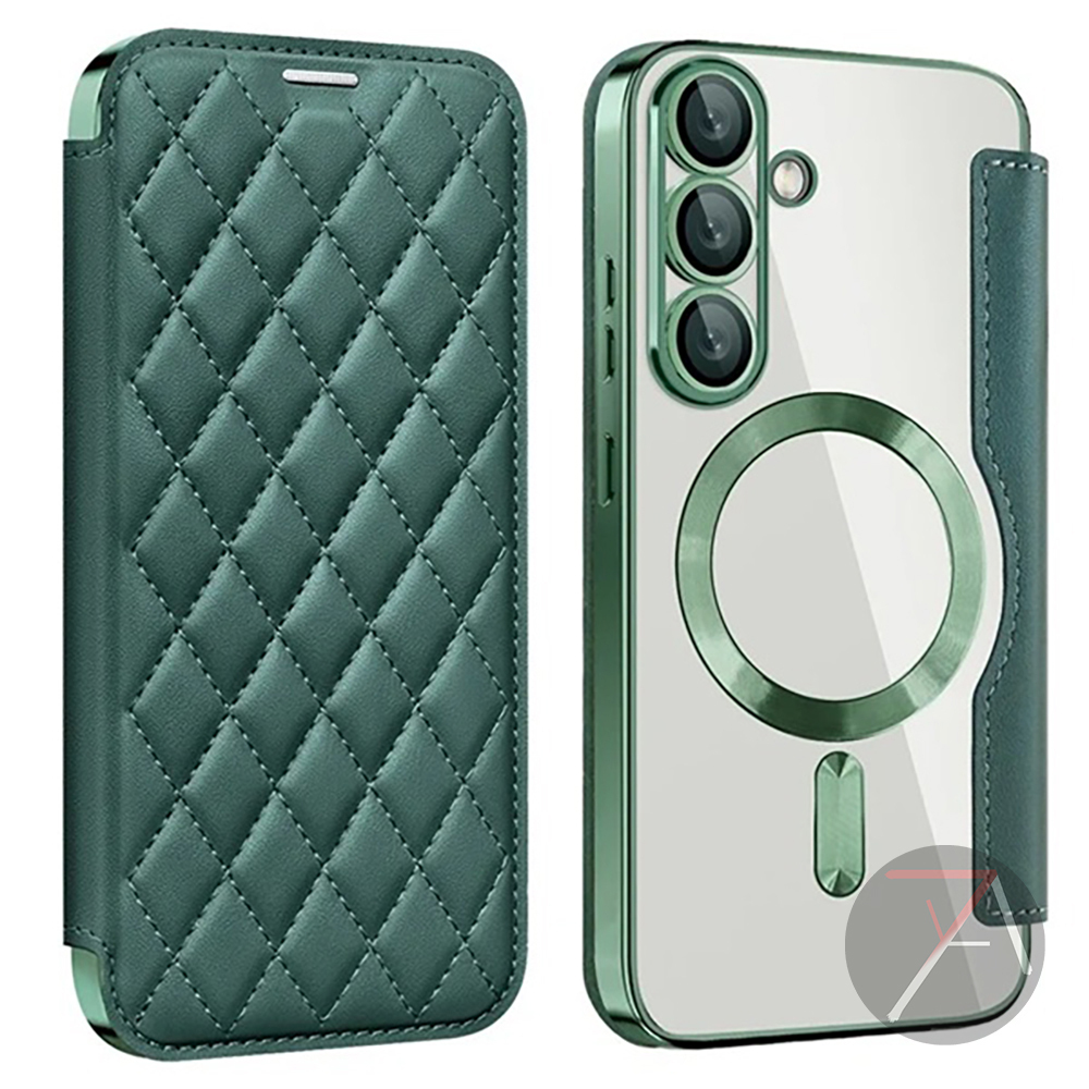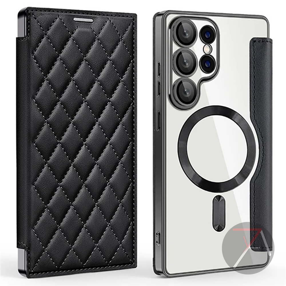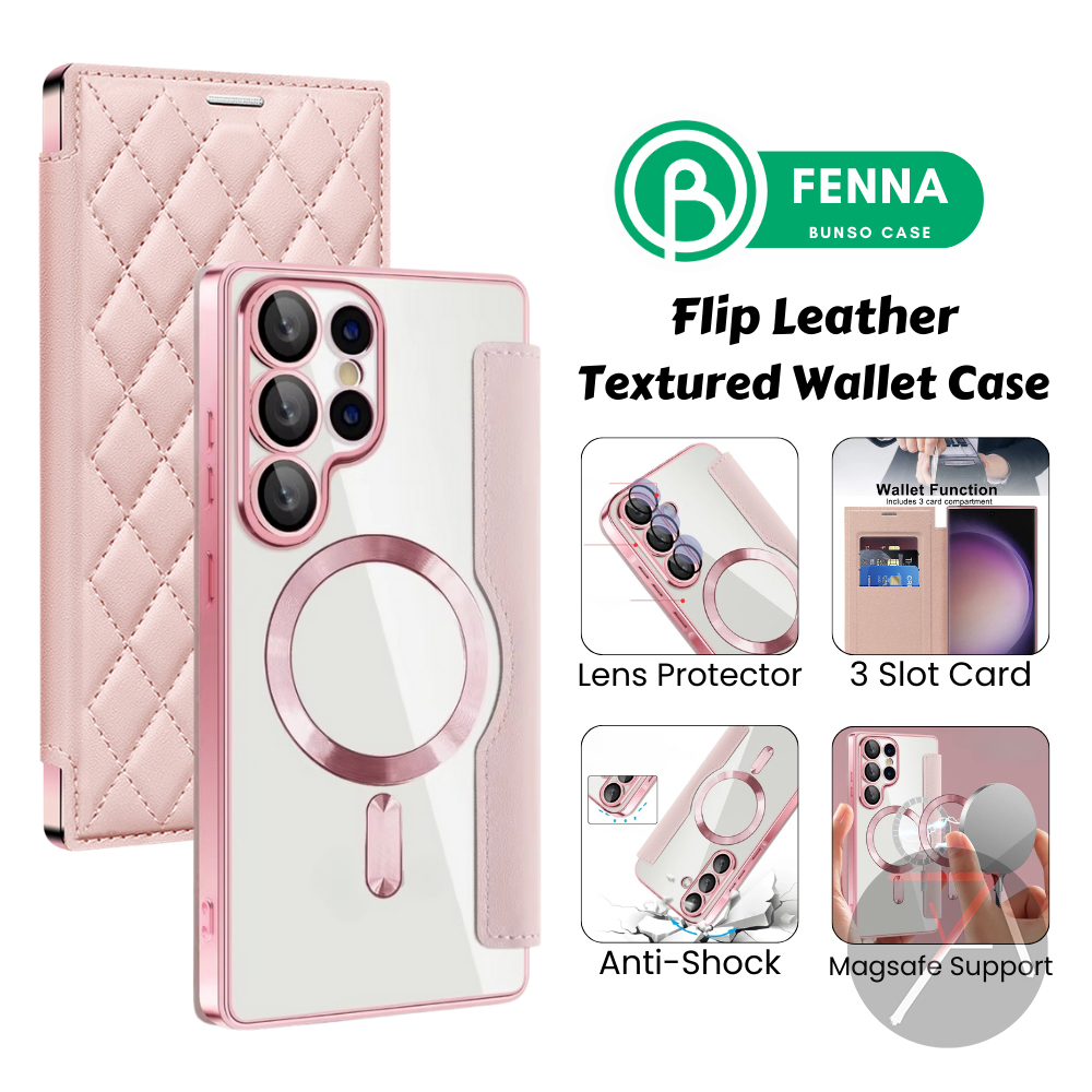 Bunso FENNA Flip Case untuk Samsung Galaxy S25 Ultra Edge Plus FE S24 S23 S22 S21 A56 A36 A55 5G Diamond Leather Magsafe