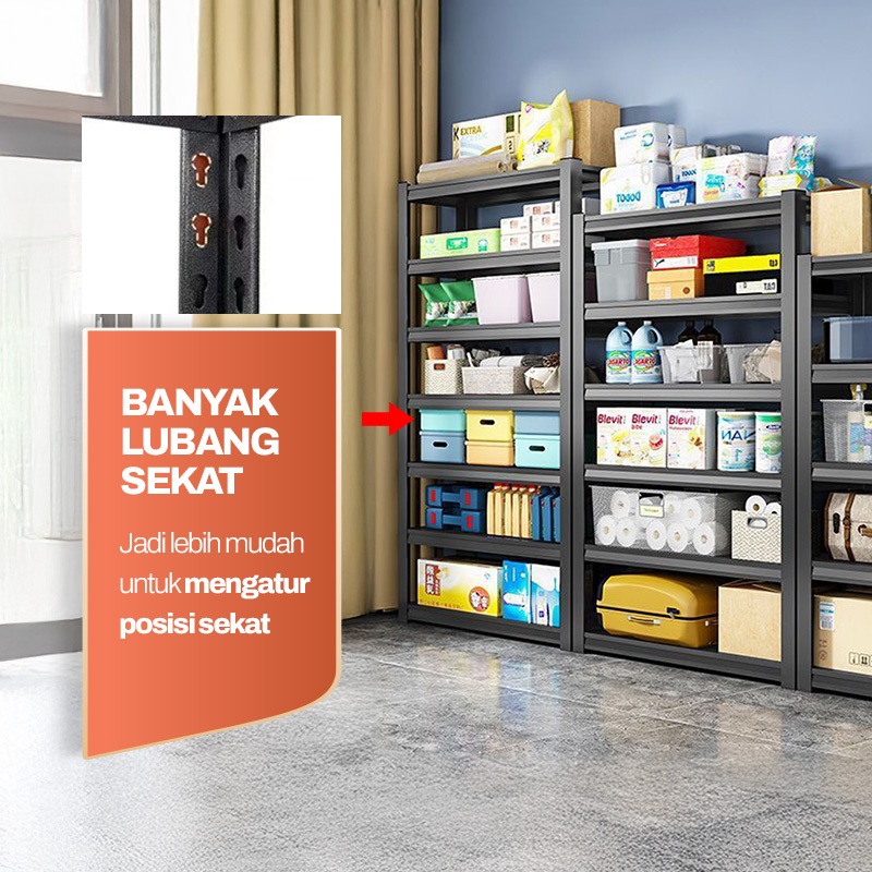Rak Gudang Besi Siku Serbaguna Rak Supermarket 3 - 6 Susun Rak Barang Tempat Penyimpanan Multifungsi
