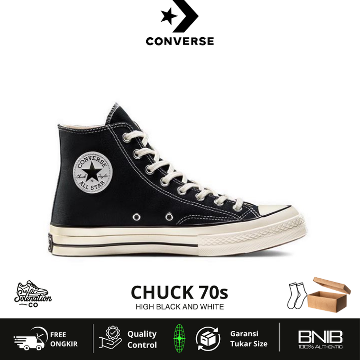 SEPATU CONVERSE CHUCK 70s HI BLACK AND WHITE SNEAKERS PRIA WANITA 100% BNIB AUTHENTIC