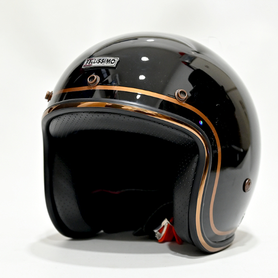BELLISSIMO HELMET Half Face - BLACK GLOSSY ( GOLD STRIPE )