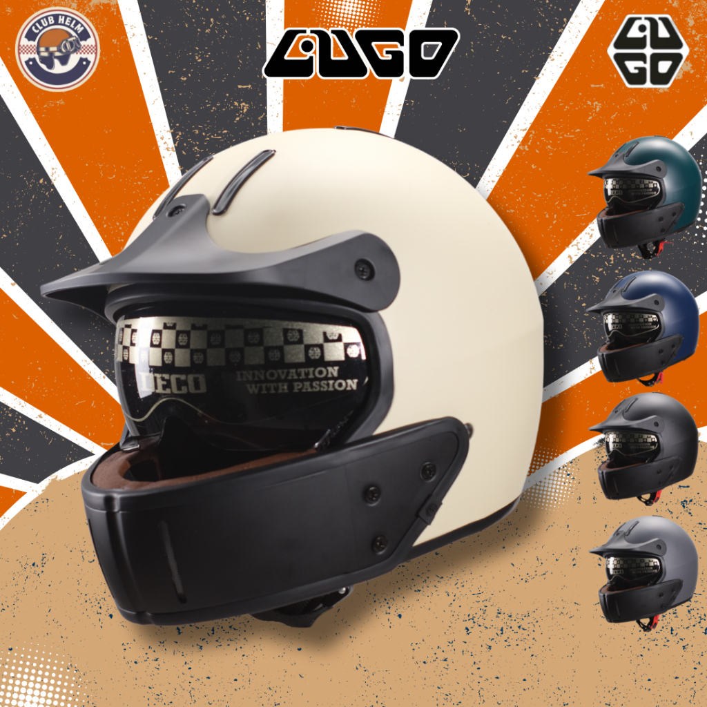 Helm Dewasa Cakil 2 in 1 SNI LUGO DECO 1957 Open Half Face + Mouthguard Polos Unisex Cowo Cewe