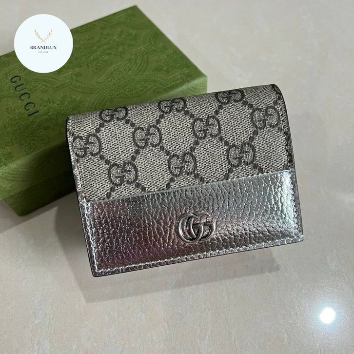 Gucci GG supreme compact wallet 5cc+zip pocket+slot Beige/ Ebony/ Silver