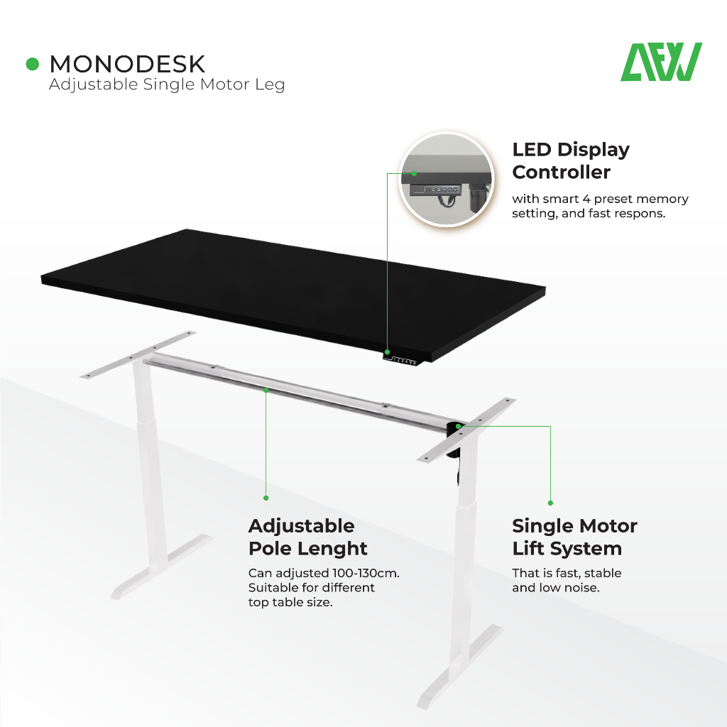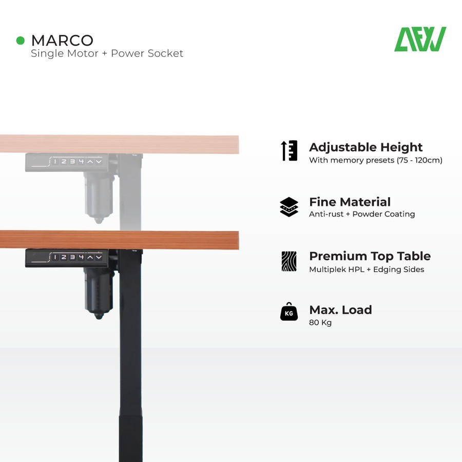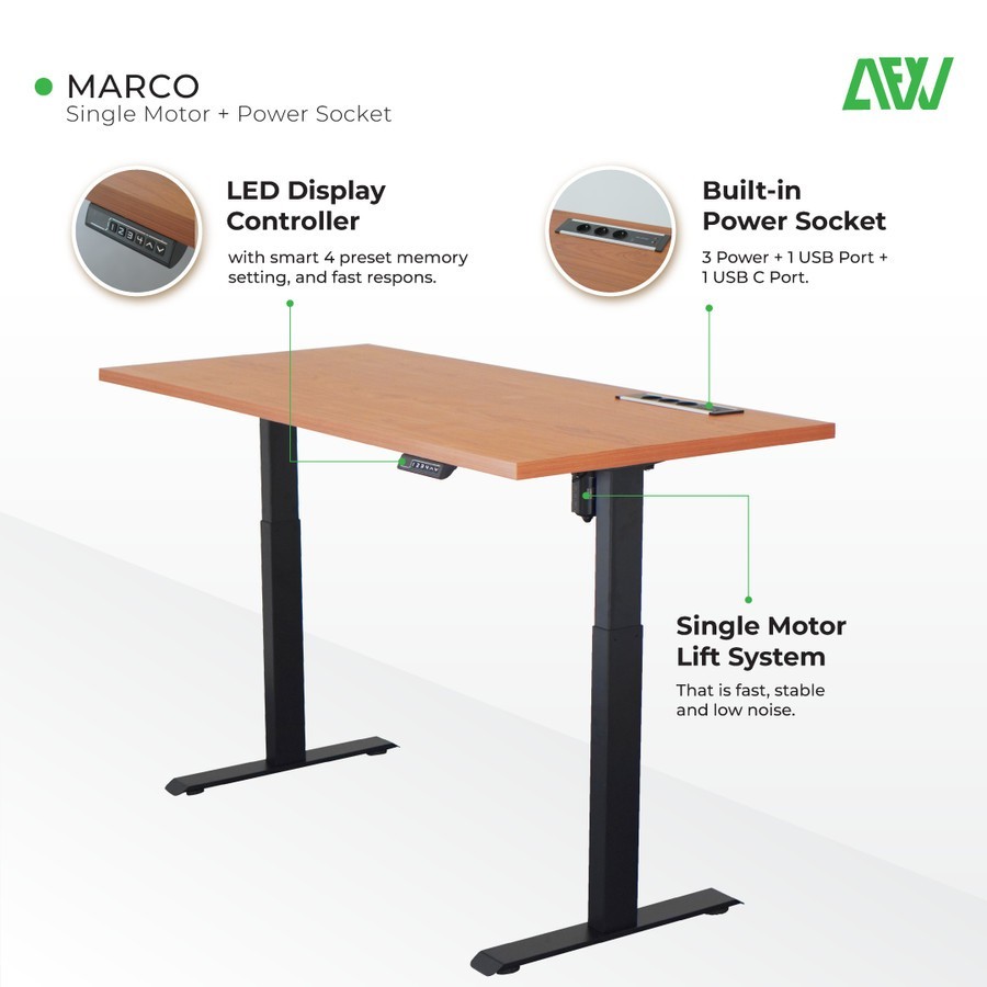 All For Work Meja Kerja MARCO Single Motor Meja Kantor Meja Elektrik Adjustable Standing Desk