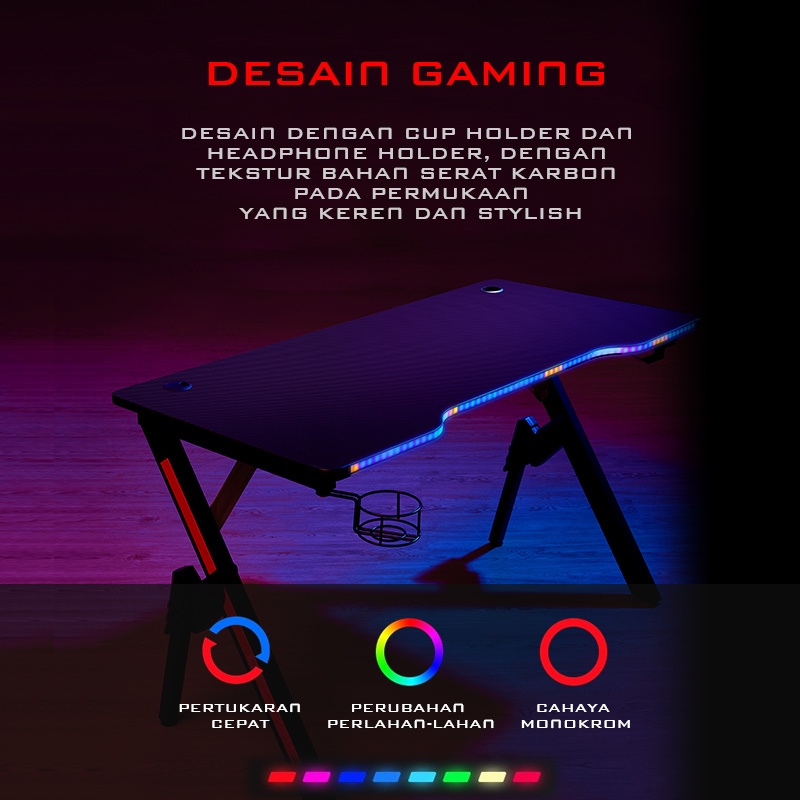 GAMEN Gaming Table Battle Desk RGB Black / Meja Komputer / Meja Gaming E-Sport / Meja Kerja / Meja Belajar Original - Ga