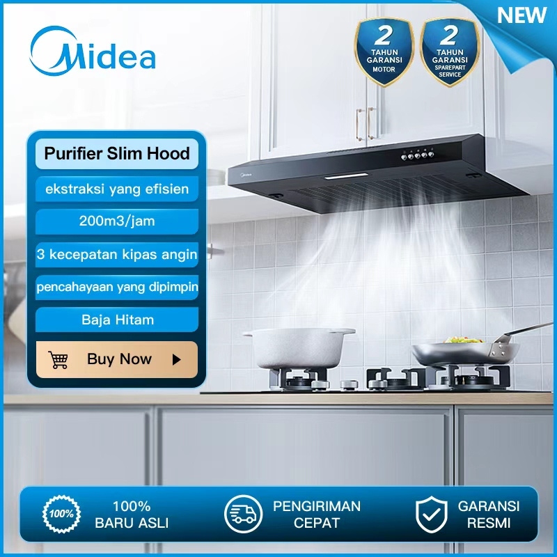 Purifier Slim Cooker Hood Midea 60cm 38W MH60F17EM21BB-ID/MH60F17EM21SB-ID Gratis Ongkir